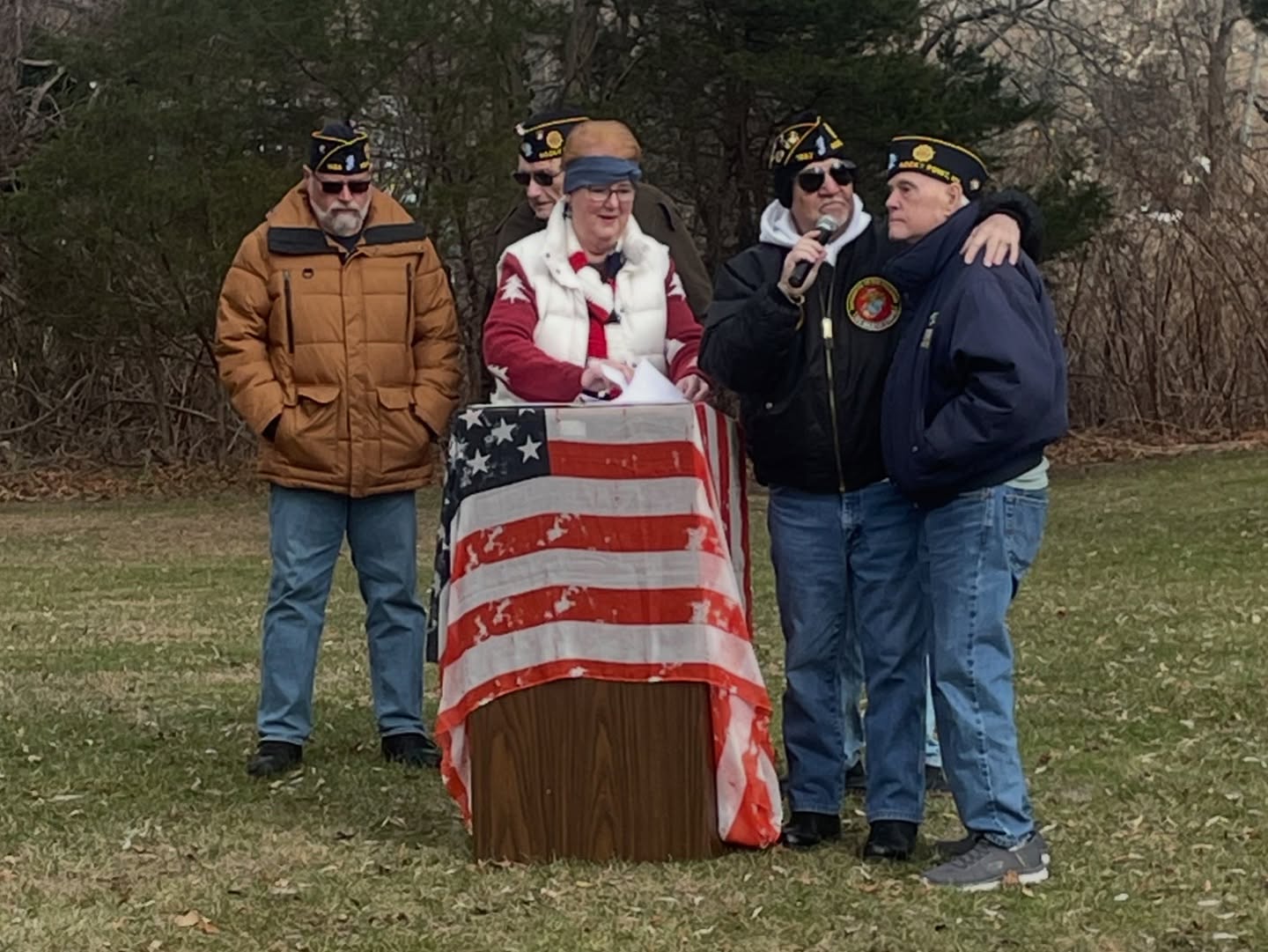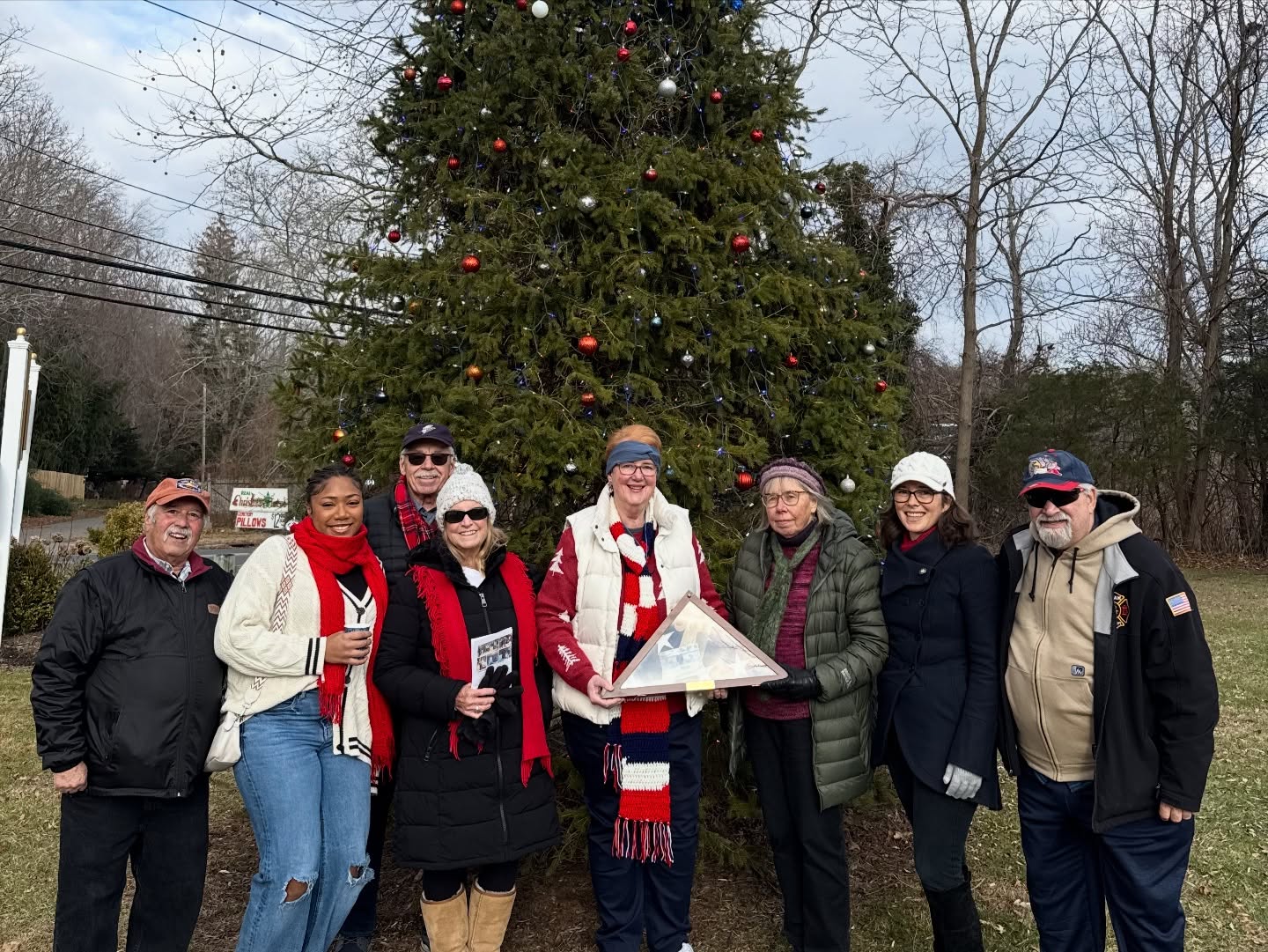 Many thanks to all who attended our 13th annual Pearl Harbor Day Patriotic Tree Lighting Ceremony at Bartlett Pond Park on Sunday, December 7th, 2025, the 84th anniversary of the Date which will Live in Infamy. We displayed Jim Eagle’s burial flag – Jim’s story of surviving Pearl Harbor, as told to Longwood students a few years before he passed, was the impetus for the Longwood Veterans Project and Monuments at Bartlett. We were honored to have Suffolk County Executive Ed Romaine and NYS Assemblywoman Rebecca Kassay speak and turn on the red, white and blue lights on our Remembrance Tree. Middle Island Fire Department volunteers placed wreaths at all eight monuments. Local Veterans in attendance were introduced and applauded by the crowd. To mark the 50th Anniversary of the Peace Pole Initiative, stones inscribed with the names of Longwood CSD’s most recent military enlistees were placed around the Peace Pole base near the entrance to the native walking trail of the park. May Peace Prevail on Earth, and may we never forget the sacrifices of Pearl Harbor and all our Veterans.